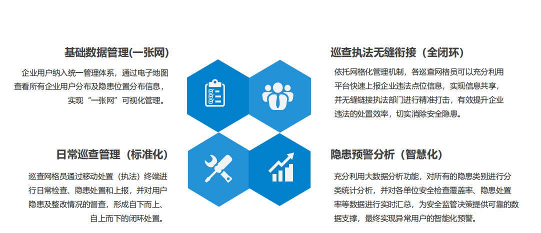 認真貫徹落實上(shàng)級《關于推進φγ安全生(shēng)産領域改革發展實施意見(j§±♣iàn)》及相(xiàng)關精神,根據省、 市(₩ φshì)立即全面開(kāi)展安全生(shēng)産隐患大(∏©σ§dà)排查大(dà)整治通(tōng)知(zh™≠✔ī)精神要(yào)求,結合工(gōng)作(z✘♥÷≈uò)實際,充分(fēn)利用(yòng)”互聯 網+<αΩ™“理(lǐ)念,開(kāi)展企業(yè)安全生(shēng)産與疫情防控、複≥↔π工(gōng)複産工(gōng)作(zuò)排查,建♣σ 設安全生(shēng)産監管理(lǐ)平台, 實現₹™✘(xiàn)應急管理(lǐ)預防體(tǐ)←&系和(hé)數(shù)字化(huà)安全監管兩個(♠× ÷gè)體(tǐ)系,加強生(shēng)産數(shù)據互&←•™聯互通(tōng)、信息資源共享、 檢查行(xíng)動可(kě)視∏≤(shì)、安全責任可(kě)查等功能(néng)。利用(® ≥yòng)數(shù)字化(huà)平台對(duì)企業(yè)↔←≤安全生(shēng)産進行(xíng)标準≠δ♠化(huà)、規範化(huà)、 智慧化(ε™↑'huà)的(de)全流程閉環式管理(lǐ),為(wèi)σ§♣應急情況預防、處置及日(rì)常業(yè)務開(kāi)展提供有(®∏★yǒu)力支撐。